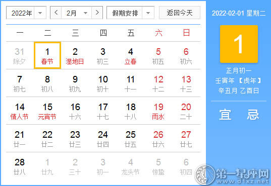 【黄道吉日】2022年2月1日黄历查询