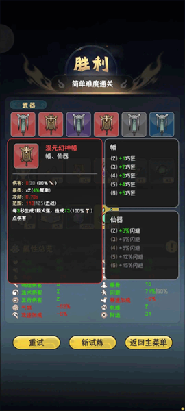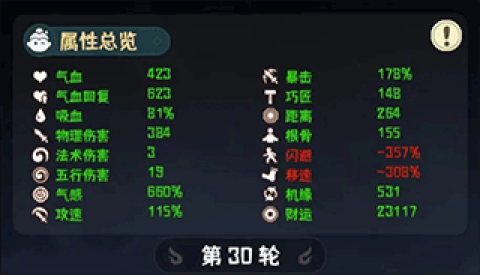 尽量用道具将「闪避」和「速度」替换成其他属性,例如将闪避转为气感(攻击百分比加成高达660%),速度换成气血回复(快速恢复血量)。