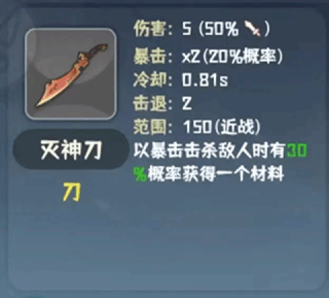 对装备的选择,推荐「灭神刀」,注意获取其暴击掉材料,升到最高级后可达到暴击60%的掉率。这一切都将为你带来极大的快感!