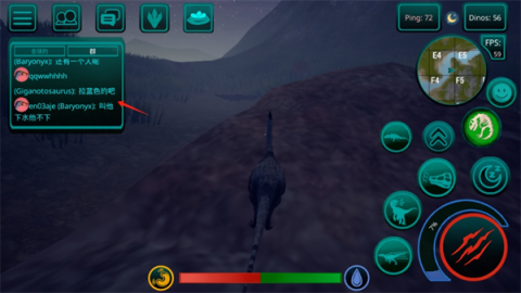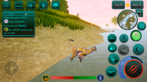 作为肉食恐龙,你需要通过击败其他玩家的恐龙来获取食物;而如果你是一只草食恐龙,则需要寻找特定的蕨类植物,同样需要把握水源,地图上的湖泊都是你保持水分的重要资源。