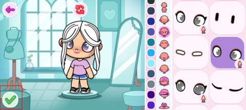 5、现在是自定义外貌的时候了!你可以选择发型、眼镜、眉毛、鼻子、嘴巴等,设计好之后,别忘了点击左下角的√保存哦。
