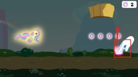 6、拾取彩虹能量后,你可以进入飞行状态,通过上下滑动屏幕来收集更多小马能量,获取更高的得分。