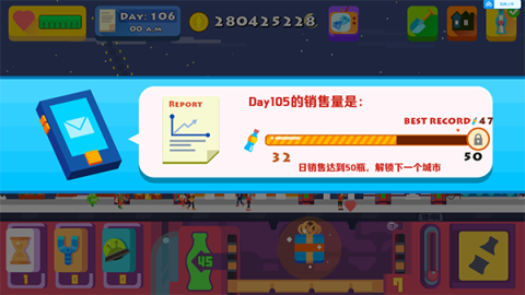 4. 在游戏中实现日销售量的目标是关键,成功达标后,你就能解锁新的城市,开拓更广阔的市场。