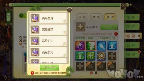1. 普通宠物在开启技能格时会随机学习一种技能,获取经验后可升级技能格。