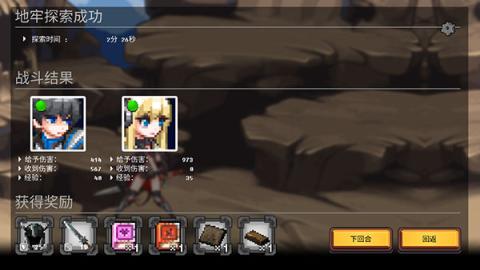 9、只要打败所有敌人,就算完成了地牢的探索,你可以选择“下回合”继续深入,或者“回返”恢复状态。