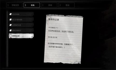 12、然后进入“体育仓库”,在里面可以找到一份“潦草的记录(文件)”,注意,上面的年份是随机的,记住顺序。