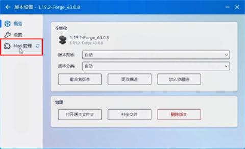 1. 在启动栏目中,点击下方的【版本设置】选项,准备进入MOD管理环节。