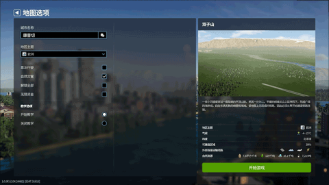 3、回到主界面后,轻松点击“新游戏”,开始你理想城市的建设之旅!创造属于自己的城市是一件多么令人激动的事情!
