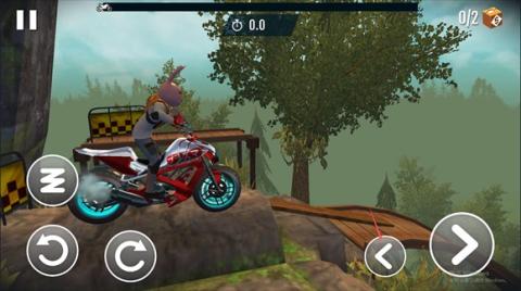 5、在游戏过程中,点击屏幕左下角的按钮,可以对摩托车进行细微的前后调整,确保在赛道上游刃有余。