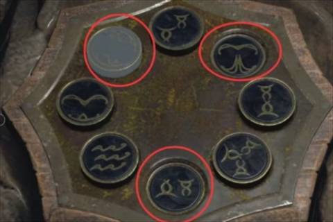 3、教堂中有一个锁,完整图案如下,右侧的柜子也藏着一个道具。4、门上的拼图解锁你可以选择最简单的方式:左下转动一次,然后上面一次。5、在餐厅解锁时,桌子的对面有副画,根据画上的信息按铃铛即可。6、当你操作阿什利时,还会碰到一个钟锁,标准难度的时间是11点04分。