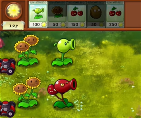 3、想象一下,将樱桃炸弹与豌豆射手结合,经过一段时间的培育,你将看到发射爆炸樱桃的射手,每一颗子弹都带有爆炸伤害,让僵尸无处可逃。