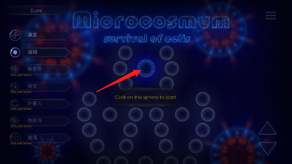 1、首先下载并安装游戏的中文版,打开后点击中间的蓝色细胞。