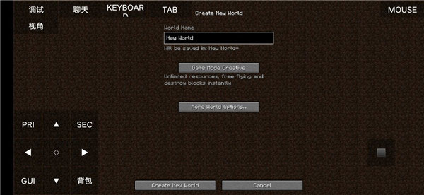 6、在接下来的界面中,选择你的游戏模式,输入世界名称,然后点击下方的“create new world”;