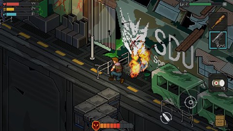 3、复古像素的画面之下,玩家将扮演寻找妻儿的英雄,一路上使用武器求生。